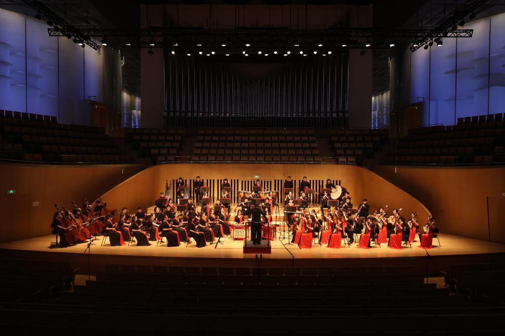 民族管弦乐《征程》由音乐学院教授杨秀玉指导、艺术实践与创作处朱长磊教授作曲、国家一级指挥马海龙指挥、山东艺术学院青年民族管弦乐团演奏。作品采用中国传统戏曲音乐元素,运用西方作曲技法进行创作,形象地描写了新中国成立后,中国共产党带领全国人民进行波澜壮阔的社会主义建设的历史画卷。