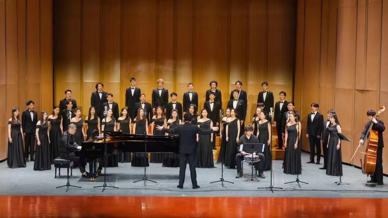 歌曲《南泥湾》《The Fire Dance of Luna》由现代音乐学院教授李强指挥,音乐教育专业学生演唱。《南泥湾》诞生于1943年抗战时期的延安,热情歌颂了大生产运动中将荒凉的南泥湾改造成美丽“江南”的八路军战士。由著名作曲家金复载先生改编的合唱版,在四四拍律动的基础上配以3+2+3的八八拍伴奏织体,使人听来妙趣横生,充满时代气息。《The Fire Dance of Luna》是新加坡作曲家林建雄创作的合唱作品,是一个幻想的故事,音乐中如部落舞蹈般炽烈的节奏,试图激发演唱者的想象力,描绘出“月亮的孩子”在火山上跳舞以庆祝他们称其为“Luna”的光荣土地的意境。