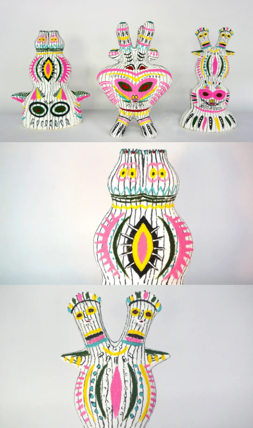 作品《泥泥狗》通过对传统淮阳泥塑泥泥狗的造型、装饰进行创新性诠释,对其表现形式在当代语境下的情感表达进行实验性探索,将符号化的文化语言用艺术语言加以呈现,表达对母亲的感恩和对女性的尊重,进而呼吁女性自信。体现了对传统淮阳泥塑的传承和其在当代语境下的创新延续,力图展现当代语境下传统泥塑新的面貌。