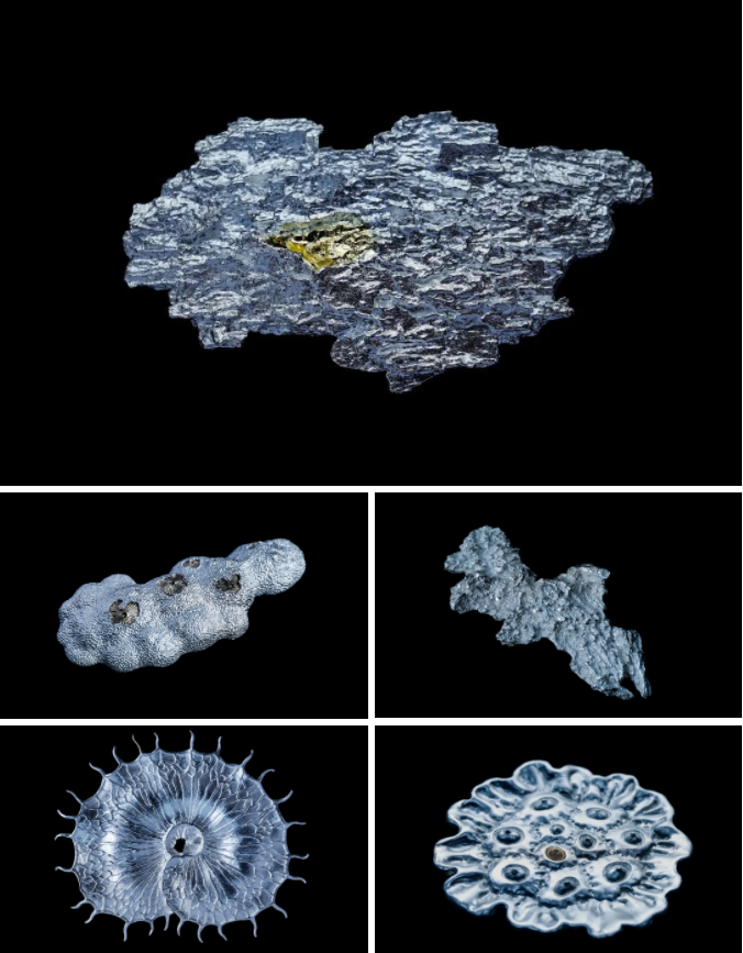句号,首尾相连,终点亦是起点,世间万物周而复始生生不息。作品《。》的灵感来源于万物凋零的深秋,大自然中龟裂的树皮、干瘪的果实、皱缩的种子等,它们经历了生长、繁荣和衰败,虽已枯萎,但并不意味着美丽的终结,而是以新的形式存在于大自然中,与人和谐共生。