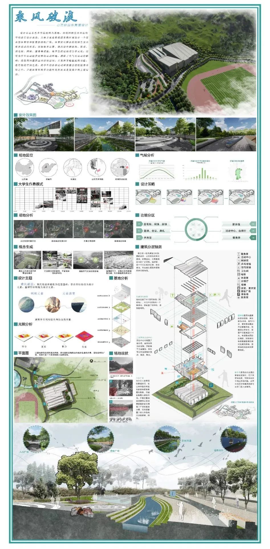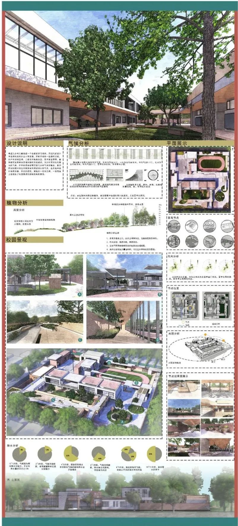 本作品着眼于乡村旧小学的环境更新设计,通过现代的设计手法使只有简单教学空间的旧小学改造成一个能够满足教学多样需求的现代化小学。作品从建筑重新构成,平面布局优化,营造特色空间三个角度入手更新,将旧小学的建筑教室重新构成为一个具有现代构成感的教学空间,梳理原有校园布局,重新规划了流线以及各个建筑的占地位置等,在校园多处营造一些充满趣味的灰空间,赋予校园场所一定的探索性。