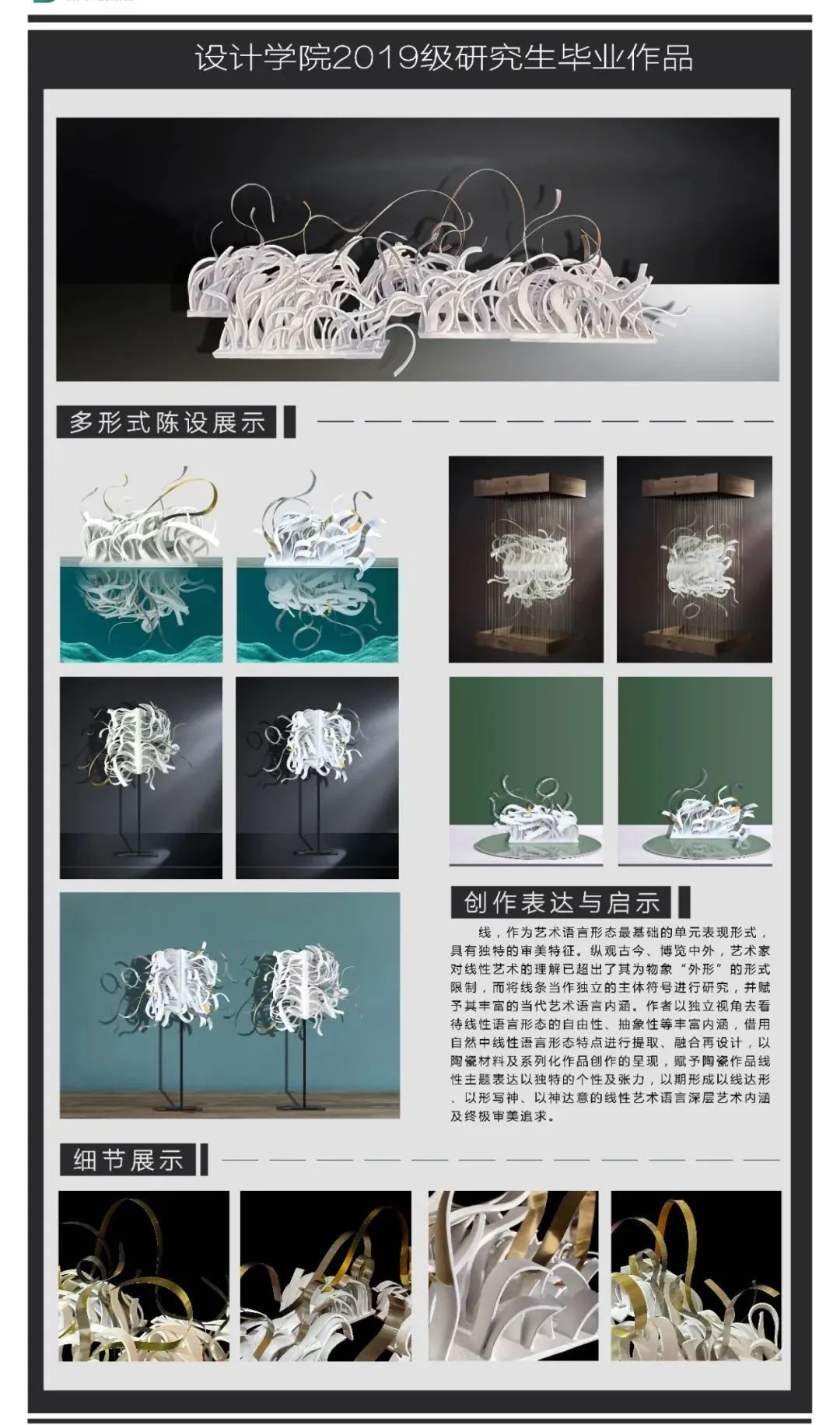 线,作为艺术语言形态最基础的单元表现形式,具有独特的审美特征。纵观古今、博览中外,艺术家对线性艺术的理解已超出了其为物象“外形”的形式限制,而将线条当作独立的主体符号进行研究,并赋予其丰富的当代艺术语言内涵。作者以独立视角去看待线性语言形态的自由性、抽象性等丰富内涵,借用自然中线性语言形态特点进行提取、融合再设计,以陶瓷材料及系列化作品创作的呈现,赋予陶瓷作品线性主题表达以独特的个性及张力,以期形成以线达形、以形写神、以神达意的线性艺术语言深层艺术内涵及终极审美追求。
