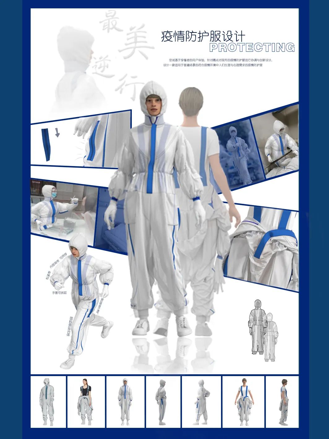 新冠疫情肆虐,无数医护工作者和志愿者奋斗在防疫的一线,防护服在疫情防控中的重要性不言而喻。作者设计的新型防护服可重复使用、具有两种穿着状态、拥有透气排汗区域、款式也贴近生活。希望能为未来防护产品的更新换代提供一种新的思路。