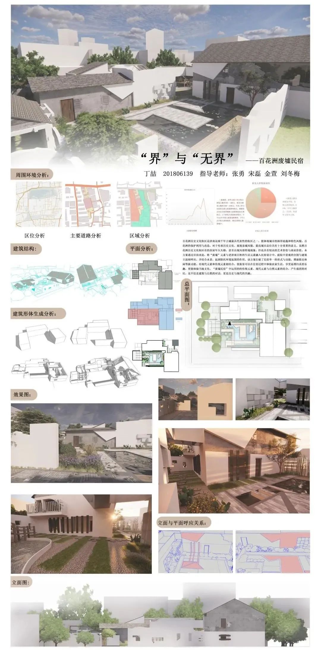 本方案通过旧房改造,将“废墟”元素与老济南百姓的生活元素融入民宿设计中,庭院中景观的分割与建筑立面相呼应。运用极简的手法,并根据客人不同的需求给与不同的体验和效果。创新了的民宿是打破单一的形式与功能,使旅客可以在住宿过程中体验农家生活,享受返璞归真的乐趣。
