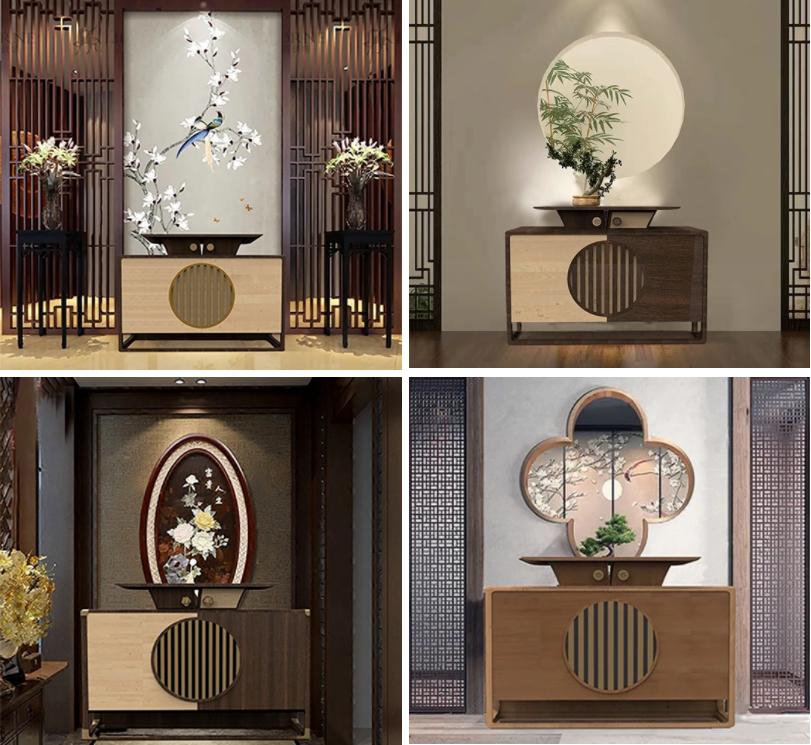 旗袍是中国女性具有代表性的传统服饰,本设计基于新中式设计理念,将旗袍的组成部分拆分开,以线条几何的形式概括进行简化与家居融合,将提取元素与所对应的家具结构进行融会贯通。旗袍的领部元素用作家具的抽屉部位,盘扣元素用作抽屉的把手,其肩部轮廓在柜体当中有所体现,圆襟的部位在柜体正中间形成一个视觉中心,此处为整个设计亮点所在。