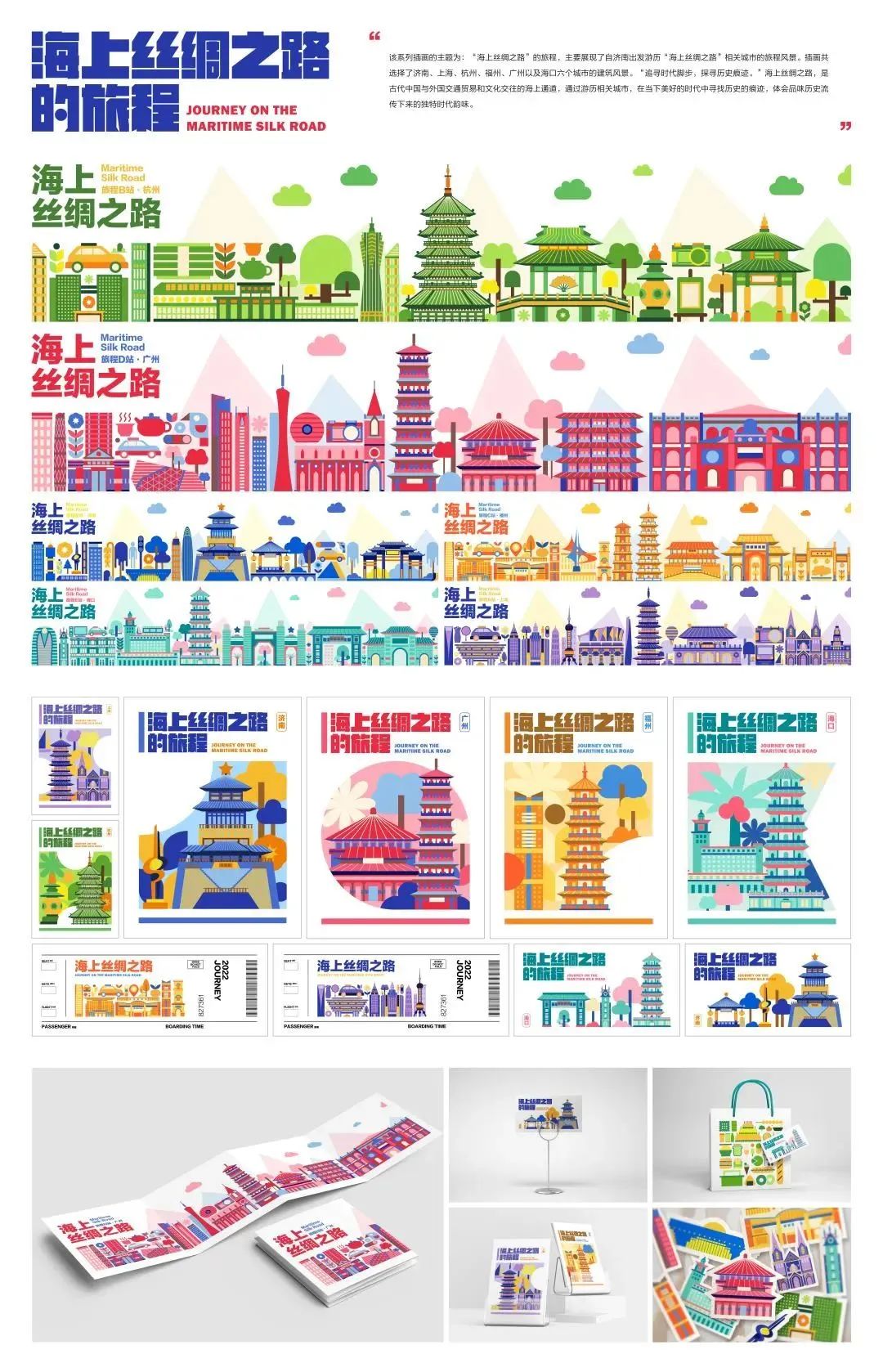 该系列插画的主题为:“海上丝绸之路”的旅程,主要展现了自济南出发游历“海上丝绸之路”相关城市的旅程风景。插画共选择了济南、上海、杭州、福州、广州以及??诹龀鞘械慕ㄖ缇啊!白费笆贝挪剑窖袄泛奂??!焙I纤砍裰罚枪糯泄胪夤煌骋缀臀幕煌暮I贤ǖ?,通过游历相关城市,在当下美好的时代中寻找历史的痕迹,体会品味历史流传下来的独特时代韵味。
