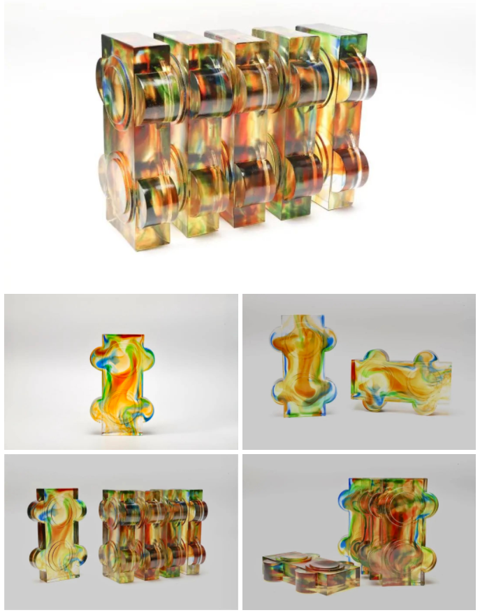 当下社会享受纯粹的快乐过于艰难。快节奏的生活将人们束缚,自然放空对人们来讲成为一件难事。故而需要让人们的大脑得到喘息,思想得到暂时解放,从社会生活的层层禁锢跳脱出来得到心灵的治愈。作品《乐享》借助仙人掌结合积木玩具的抽象的形态帮助琉璃设计,赋予其内在的艺术形象和精神。追求恰到好处的曲线,符合现代社会人们的审美追求绚烂的色彩贴合人们现代生活的体验。