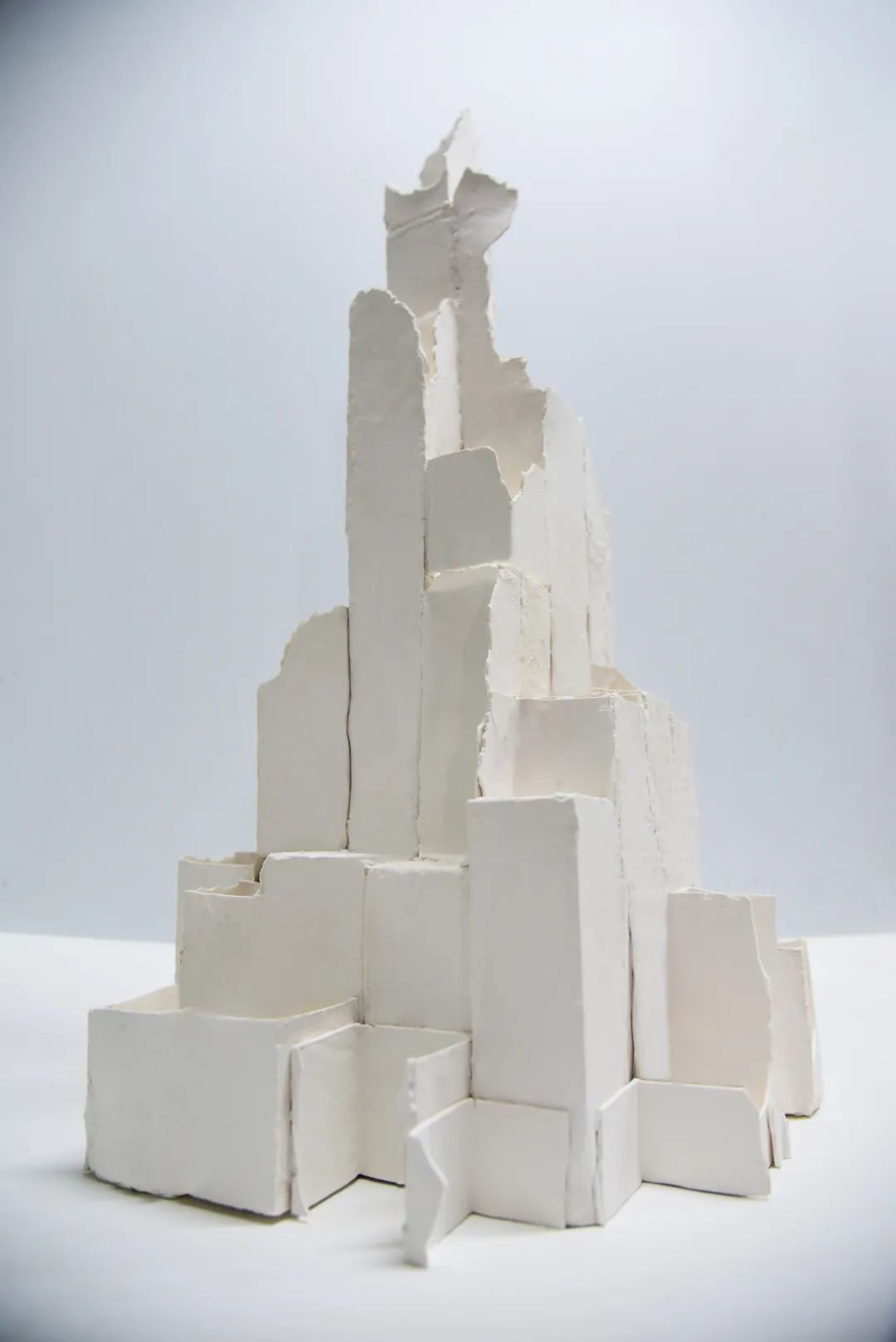 作品的创作思路来自城市风光与自然山水,以完整的长方体组合为基本造型,以泥土肌理为装饰效果,表现高楼林立与山清水秀的融合。作品以长方体为基本元素,对其进行排列组合,通过整齐划一的排列造型为表现之一,将完整的长方体与在翻制模具时偶然碎裂的长方体组合在一起,形成对比。在装饰上,通过泥土的肌理,凹凸的泥面将这种有序化的形状打破,对破碎的造型与肌理作多种实践。