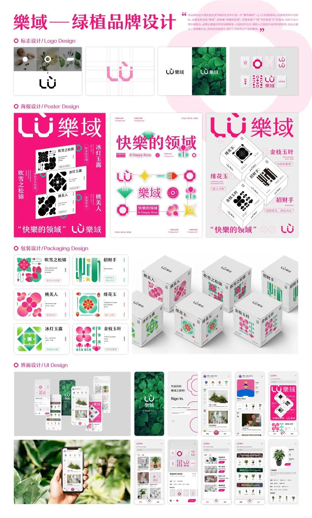 该品牌的设计理念是在快节奏的生活中打造一片“都市森林”,不仅让人们的感官得到休息,同时让人们的心灵感受到片刻的轻松愉快。品牌名称选择“樂域”,意味着“快樂的区域”,灵感来源于“绿”字的拼音“lǜ”的音译,恰好与设计理念相契合。选品主要以小型绿植为主,同时还包括种子、园艺工具和周边产品的售卖。
